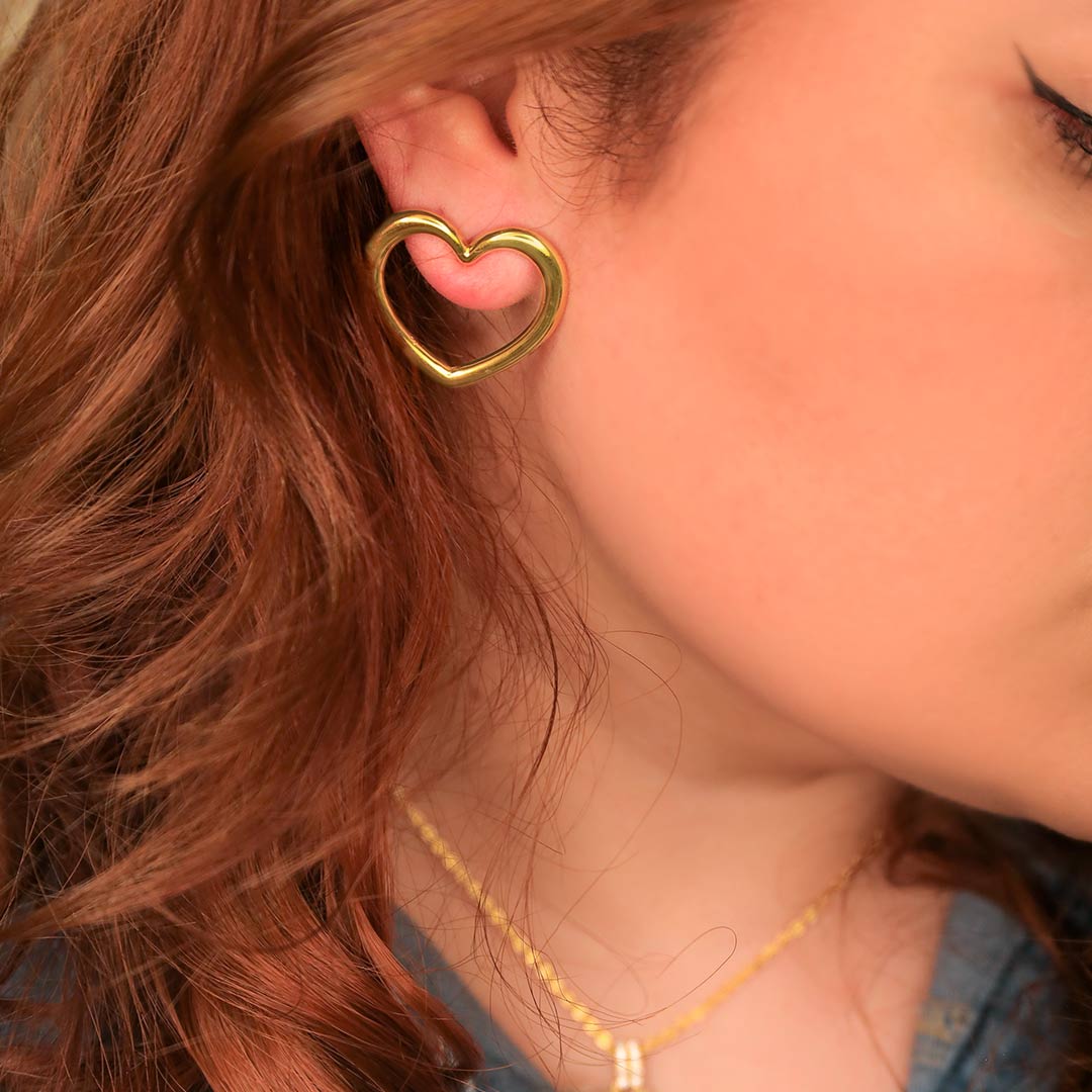 Aretes Dorados de Acero Inoxidable de Corazón -Sweetheart