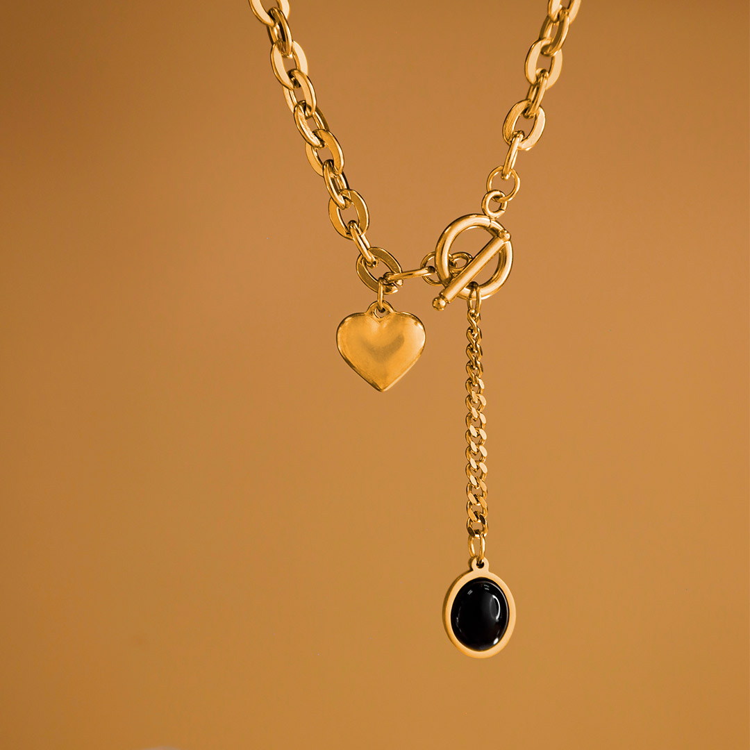 Collar Dorado de Acero de Titanio de Corazón – Amore Nero