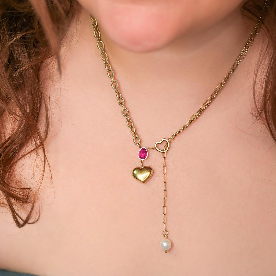 Collar Dorado de Acero Inoxidable de Corazón – Lussuoso