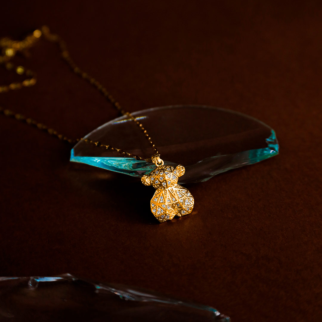 Collar Dorado de Acero Inoxidable de Oso – Geometric Bear